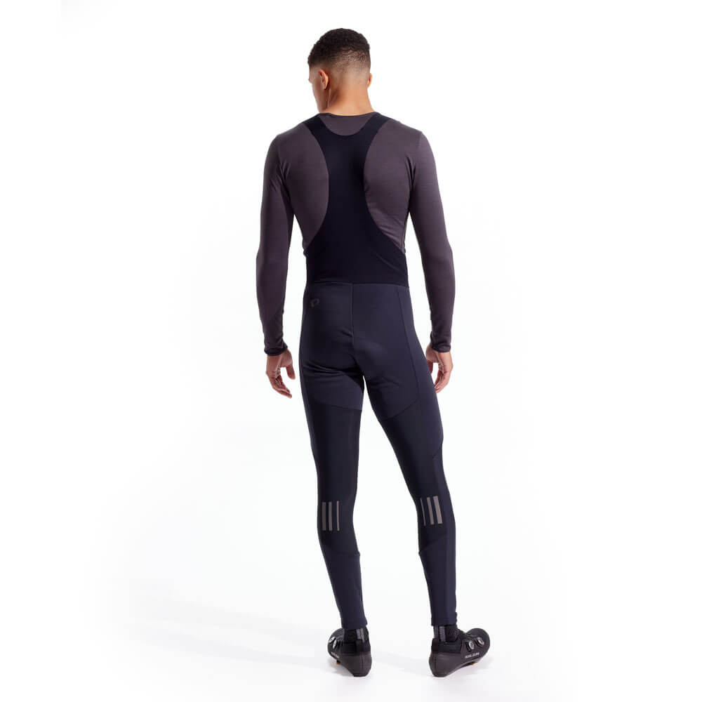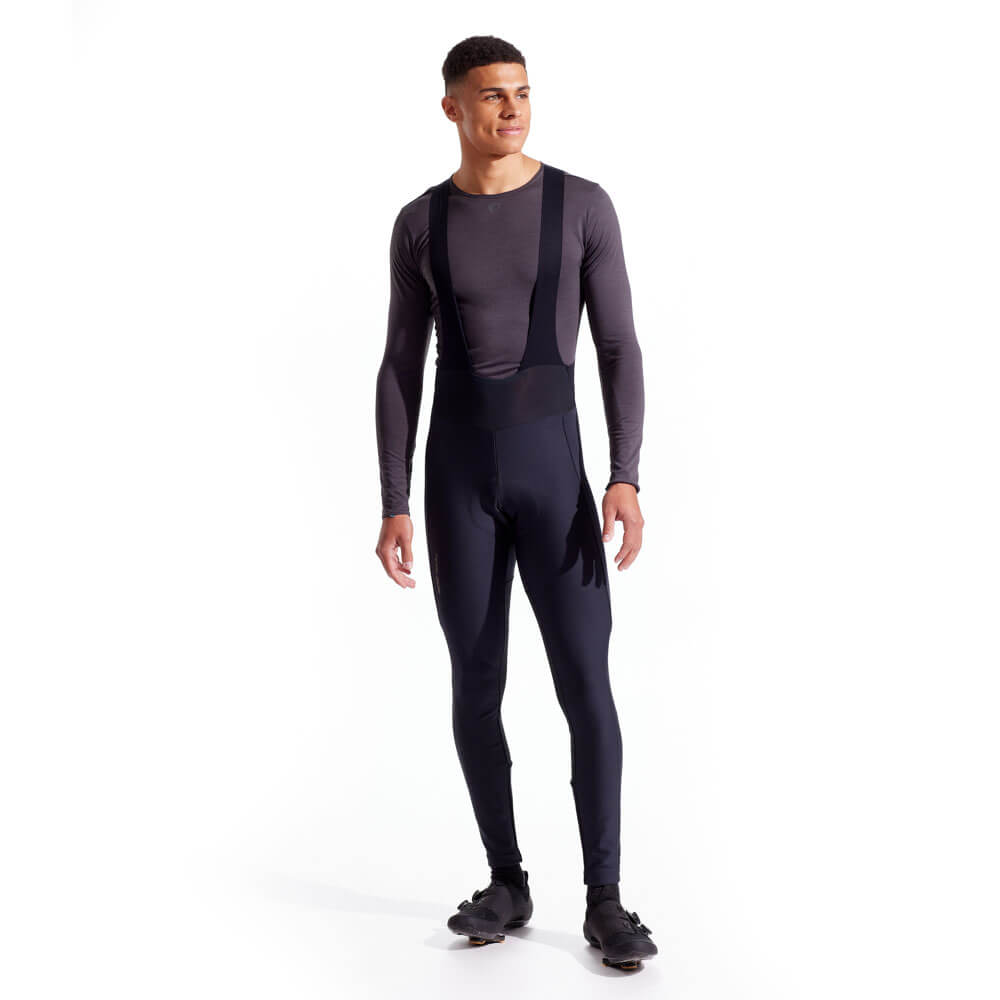 Pearl Izumi Amfib cykelbyxor – långa cykelbyxor med hängslen som får dig ut genom dörren när temperaturen är lägre utomhus. Genom senaste generationen AmFIB® softshell tillsammans med termofleece har byxorna en överlägsen passform och funktion. AmFIB-softshell skyddar framsidan av benen, sätet och området runt hälsenorna mot väder och vind. Termofleece på baksidan av benen och runt knän isolerar och ger god andningsförmåga. Bib-hängslena med råa kanter minskar bulk och förbättrar komforten när du klär dig lager-på-lager. Den vattenavvisande teknologin PI Dry® gör att regn och väta inte tränger in och håller paddingen Levitate™ Plus torr. BioViz®-reflexer sitter högt upp på vaderna för att synas även när du använder skoöverdrag. Även på höften finns reflexer för ökad synlighet i mörker.