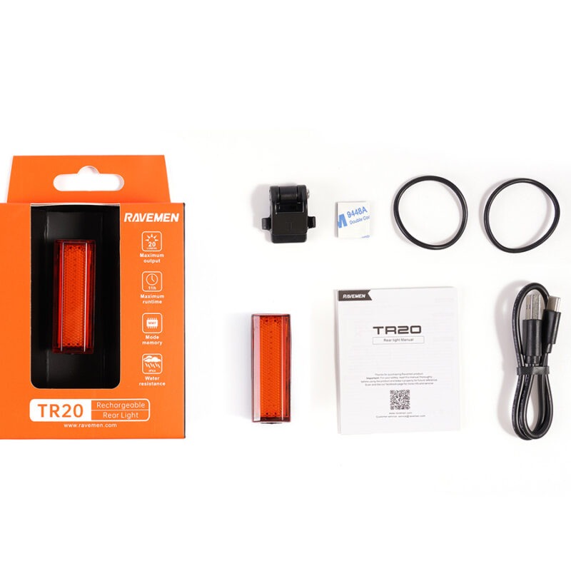 Ravemen TR20 Baklampa Med bara 20 gram och 20 LED-lumen är Ravemen TR20 en superkompakt, lätt men ändå tålig baklampa för din cykel. Med snabbkopplingsfäste som gör lampan lätt att montera är den bekväm att använda när du pendlar eller landsvägscyklar. Baklampan går att montera på sadelstolpen eller på hjälmen.